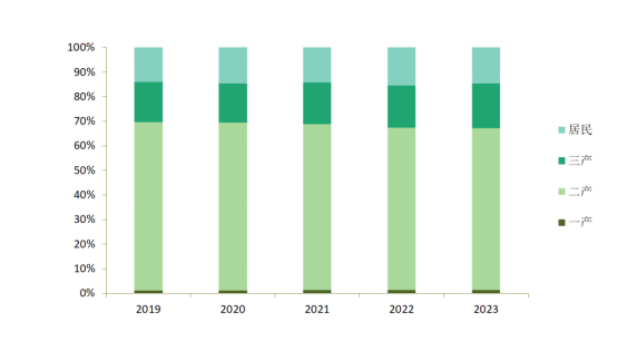 圖1 2019—2023年全社會用電結(jié)構(gòu)